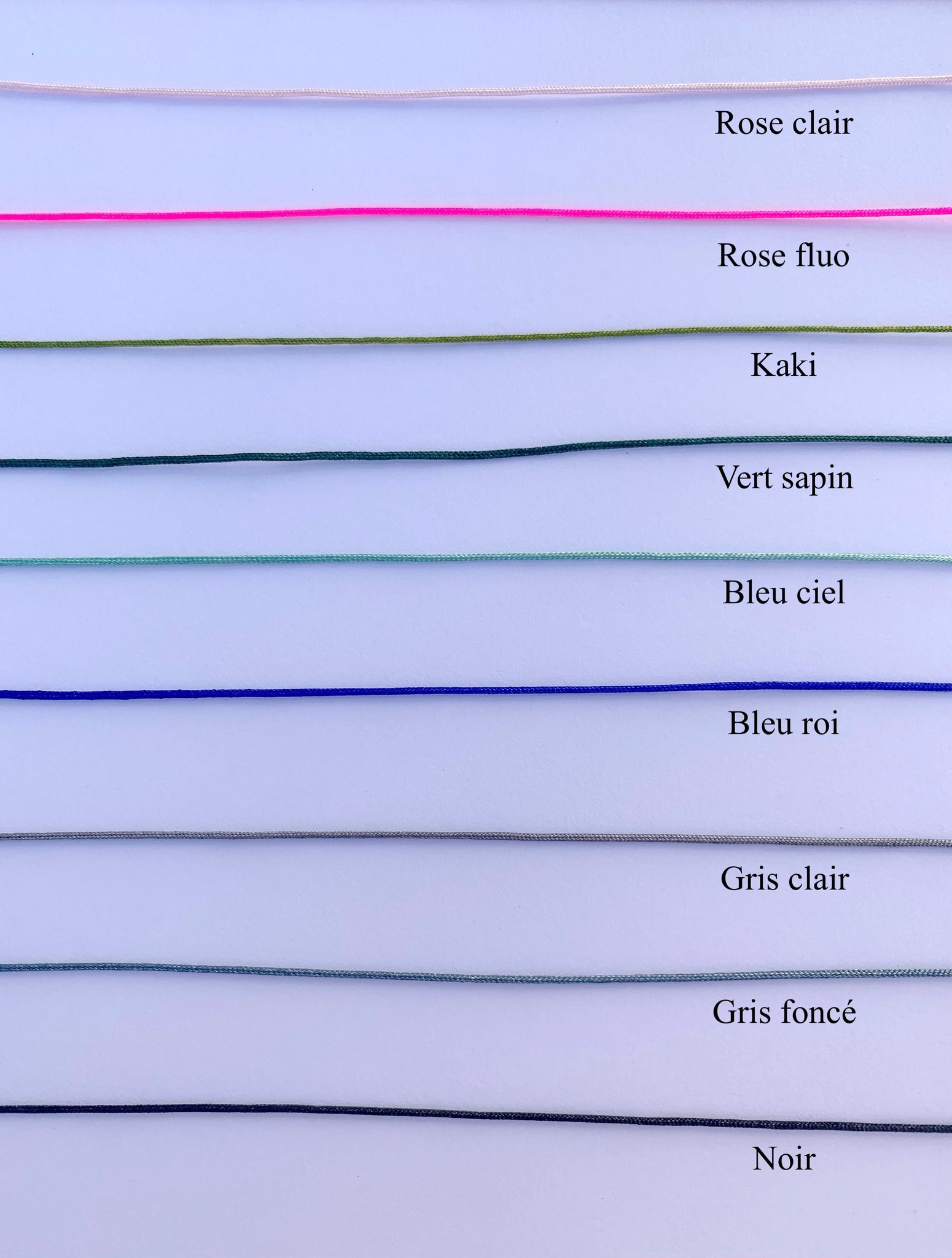 - Couleur du fil au choix (voir photos jointes pour les couleurs disponibles)
