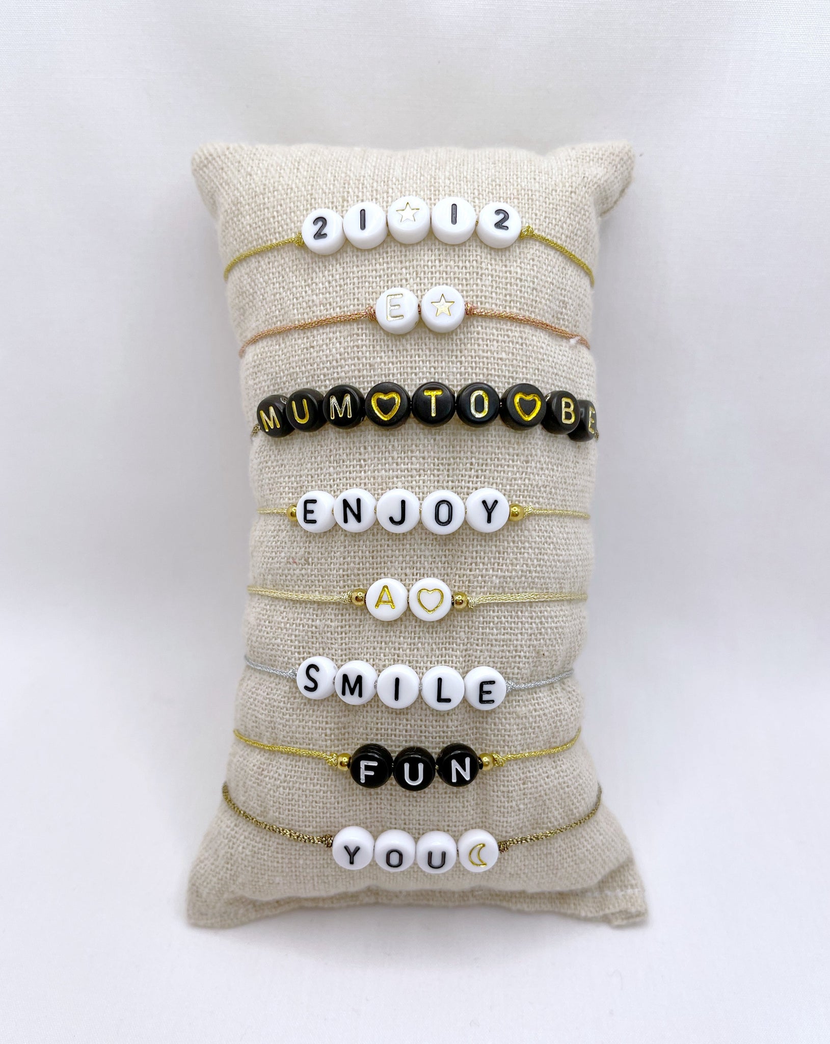 - Ces bracelets sont personnalisables à l'infini : écrivez une lettre, un mot, un prénom, une date... tout ce qui vous plaira :)