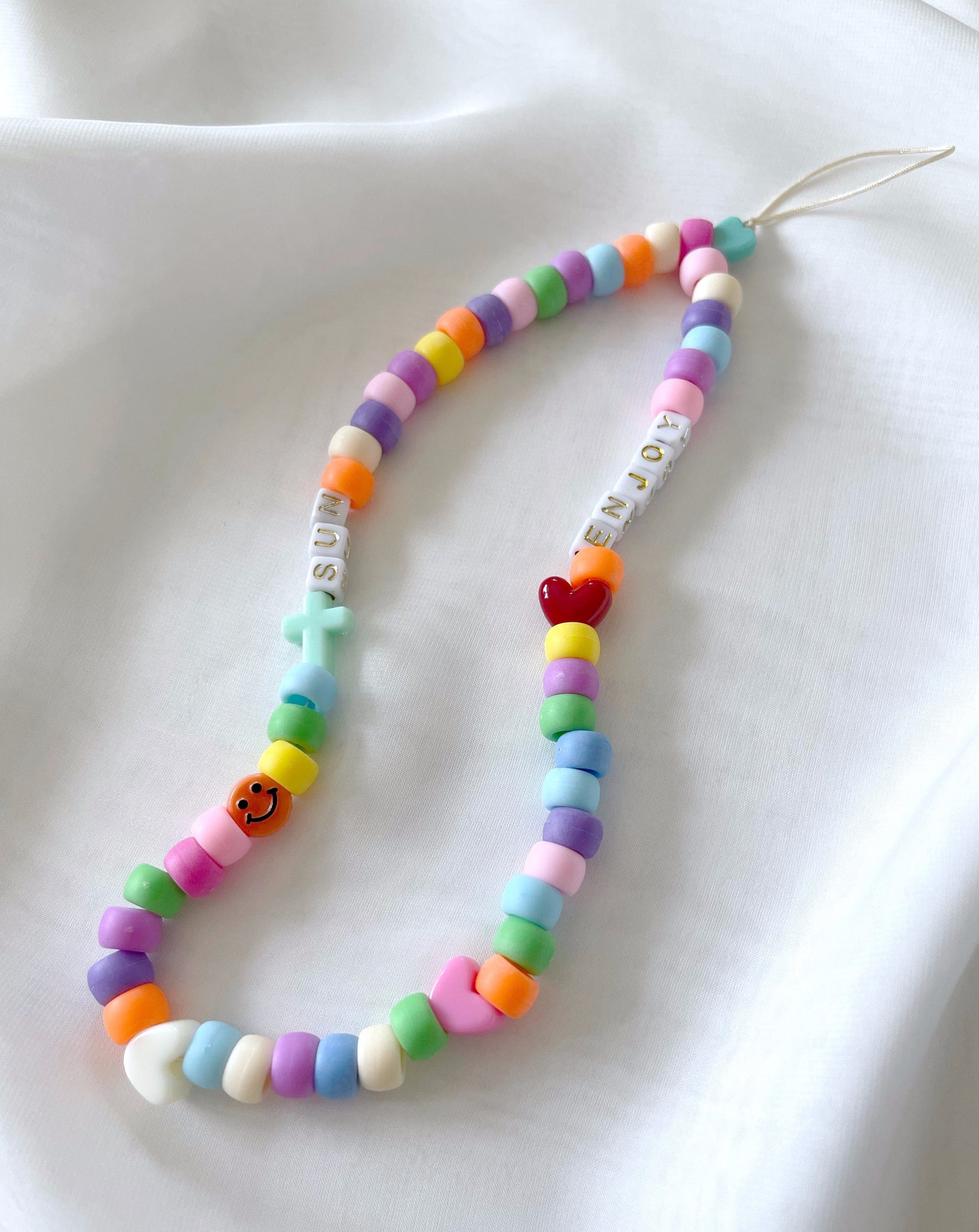 - Si vous souhaitez un symbole dans votre mot, écrivez-le dans la barre "personnalisation" à côté de votre mot (voir photo pour les différentes perles disponibles) / Par exemple : "Summer +coeur bleu"