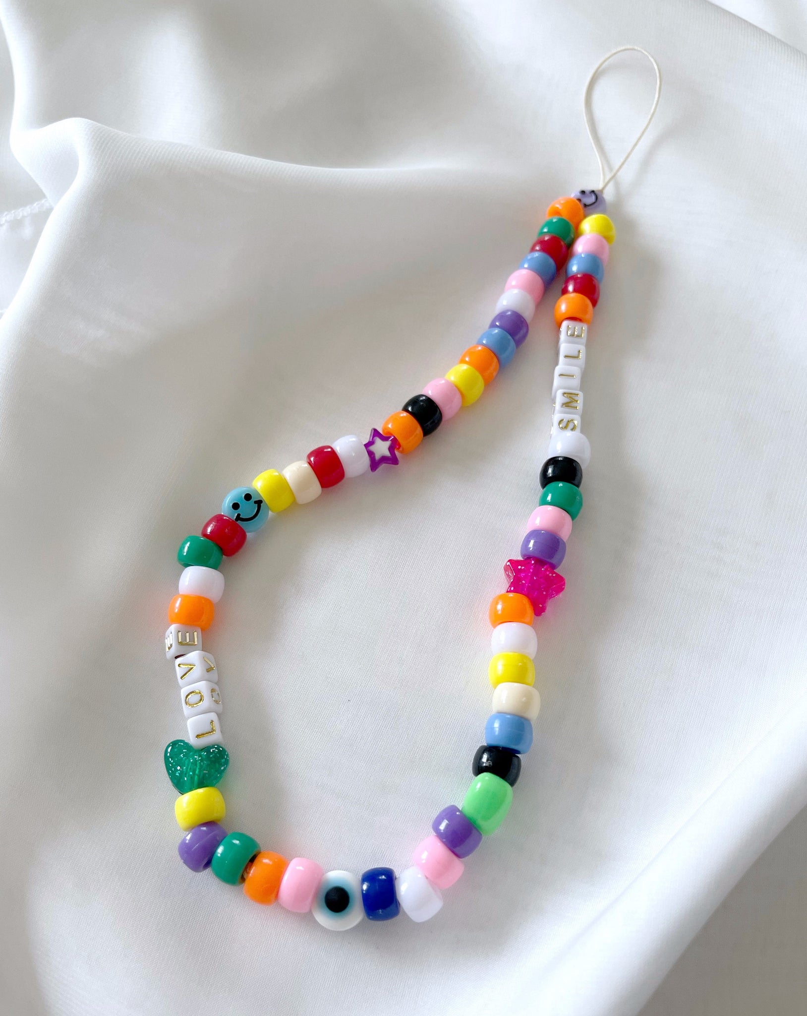 - Si vous souhaitez un symbole dans votre mot, écrivez-le dans la barre "personnalisation" à côté de votre mot (voir photo pour les différentes perles disponibles) / Par exemple : "Summer +coeur bleu"